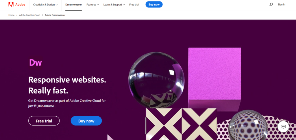 As for price, Adobe Dreamweaver is part of the Adobe Creative Cloud suite and requires a monthly or annual subscription. Prices for a single app subscription start at $20.99/month (billed annually).