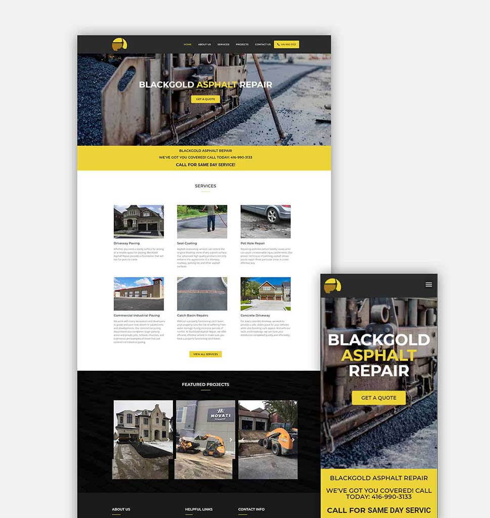 From proper planning to execution, we take our pride in providing endless top class and satisfactory workmanship to residential, commercial, municipal, and industrial pavement installations or repair projects. We highlight Blackgold Asphalt’s projects by creating a website that will showcase their quality work.