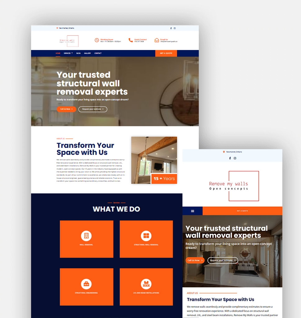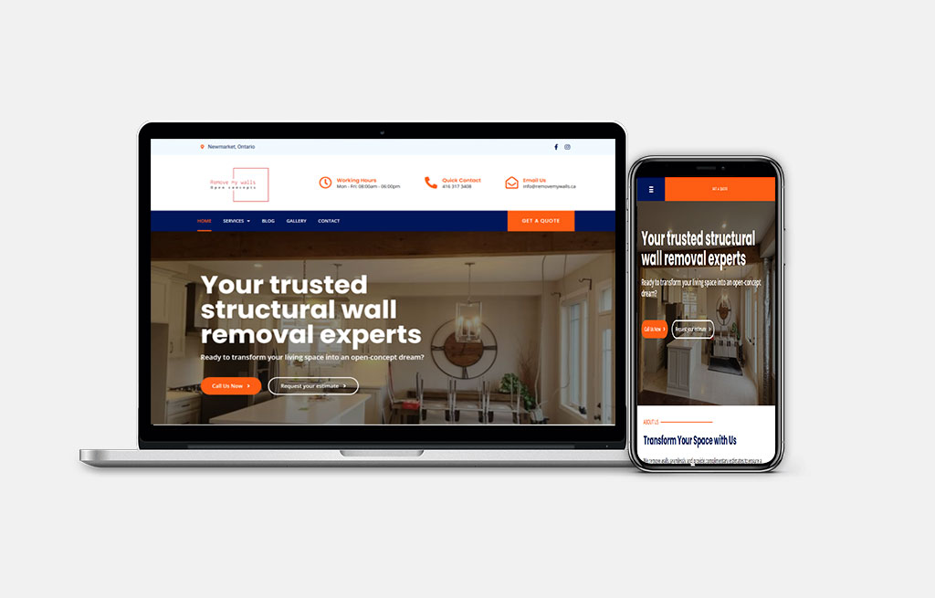 To reflect the versatility of Remove My Walls, a website has been designed that not only showcases their high-quality work but also provides informative details about the services they offer. Enhanced with mobile responsiveness, it ensures accessibility on any platform, at any time.